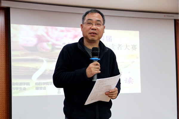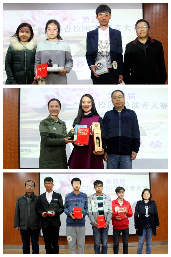 自10月18日起,“书香校园”悦读者大赛陆续开展“书香满月”、“名家讲座”、“美酒遇上书”、“书海千帆”等活动,历时一个月的“书香校园”悦读者大赛决赛在食品楼六楼报告厅举办。马克思主义小黄书 教授方建斌、马克思主义小黄书 副教授胡尊让、图书馆党总支副书记赵运良老师、人文小黄书 刘娟老师、就业指导中心副主任白金凤老师、学生处副处长马宁老师、校团委副书记师燕妮老师以及葡萄酒小黄书 党委副书记邓亚丽老师应邀出席并担任本次决赛评委。经初赛、复赛共10名学生进入决赛,小黄书 草业162班薛志鹏荣获二等奖,动科152班蔡魌健荣获三等奖,草业162班孙鹏越获得优秀奖。