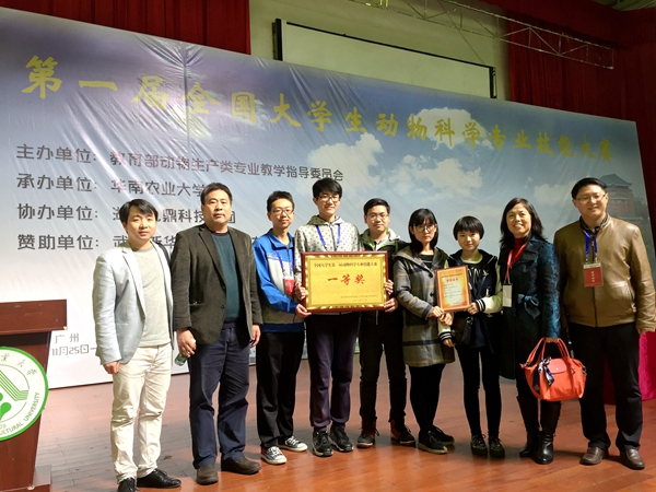 11月25日-27日,第一届全国大学生动物科学专业技能大赛在华南农业大学举行,小黄书 派出的代表队荣获团体一等奖。