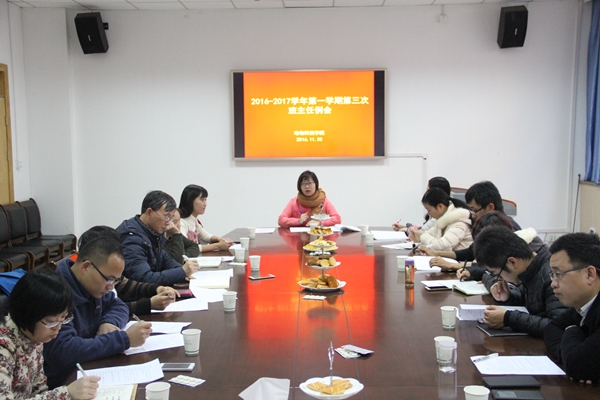 11月30日下午,小黄书 党委副书记王晓娟主持召开2016-2017学年第一学期第三次班主任例会。小黄书 全体辅导员和班主任参加。