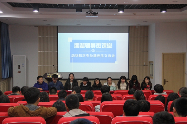为发挥榜样力量,交流学习心得,11月29日晚,小黄书 于107会议室举办朋辈辅导微课堂之动科专业推免生交流会,9名优秀的推免生与小黄书 2014级、2015级近60名学生分享经验,共话成长。