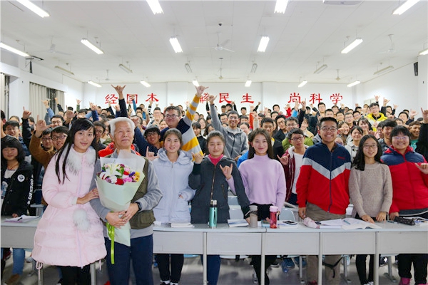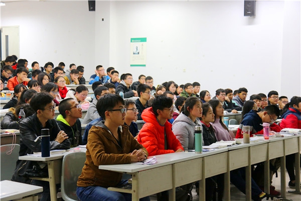 在热烈的掌声中,王迺信教授走进了2016级同学们。他首先从高等数学的起源切入,比较了高等数学和古代数学的不同,以牛顿和爱因斯坦为对象,有力地证明了高等数学的优势与先进性。王老师激励同学们要以创新的思维看待问题,培养学科敏感度,学会从数学的角度分析解决问题。随后,王老师结合中国传统文化中的二十四节气,帮助同学们建立了相应的数学模型,传递了高等数学中最为重要的建模思想,大家被数学的精妙深深折服,纷纷对王老师逻辑严密的讲解报以热烈的掌声。最后他结合自身经历,鼓励同学们勇于用批判的眼光看待问题,将理性思维与感性认知相结合,做有思想、更有趣儿的人。
