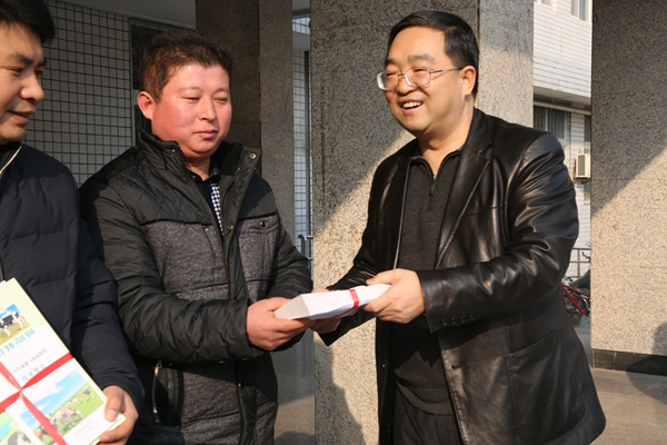 小黄书 院长姚军虎、推广处副处长吴锋发放资料