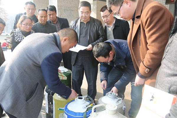 昝林森教授主持发放仪式并致辞,他首先介绍了项目执行情况和对产业的提升带动作用,并就发放奶牛性控冻精的目的意义及这次发放的从美国进口的荷斯坦牛性控冻精的系谱资料、使用方法、注意事项等做了重点介绍。随后,推广处吴锋副处长在讲话中再次强调要充分发挥陕西省重点农技推广项目的作用,按三个层级开展技术研发、集成示范和辐射推广,做好技术链的打造和产业链的拓展,全力打造新型技术研发示范推广模式。姚军虎院长讲话时表示,各项目承担单位一定珍惜这批进口的高产荷斯坦奶牛性控冻精,并按照项目组提供的配套技术保存好、使用好,做好选种选配和后代的选留、养殖工作,充分发挥技术辐射和带动作用。