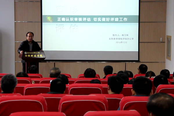会上,校教务处处长陈玉林教授有针对性地介绍了我国的高校教学评估制度、审核评估的框架及指标体系、审核专家进校现场考察流程。重点解读了五位一体评估制度的内涵,强调审核评估的指导思想是“对国家负责,为学校服务”,审核评估的重点是“五个度——达成度、适应度、保障度、有效度、满意度”。还结合校内外的评估经验,对指标体系中的关键观测点进行详细说明。陈玉林处长的报告让全院教师深刻认识了评估的重要意义,精确把握了工作的原则。