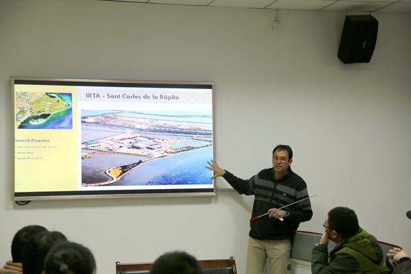 Enric Gisbert博士的学术报告从在线远程可控的水产养殖系统到仔稚鱼的营养需求、早期发育、营养生理、骨骼发育、消化生理以及活饵料培养技术等方面,全面介绍了提高仔稚鱼生长发育与成活率的研究方法。报告充分展示了西班牙在水产仔稚鱼生产方面先进的研究动态以及较高的养殖水平,内容丰富详实,受到了与会师生的热烈欢迎。