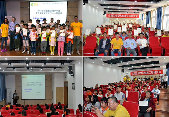 5月14日,由中国细胞生物学学会主办,小黄书 曾文先教授团队承办的2017年全国“实验室开放日”(杨凌站)活动在小黄书 顺利举行。本次报告会共吸引了来自杨凌示范区的150余名中小学生及家长参加。小黄书 党委副书记王晓娟,陕西省细胞生物学学会理事、小黄书 生殖生物学与细胞工程研究团队带头人曾文先教授,团队骨干成员、中国细胞生物学学会科普工作者董武子副教授,张家岗小学少先大队辅导员连增辉出席了本次科普活动。