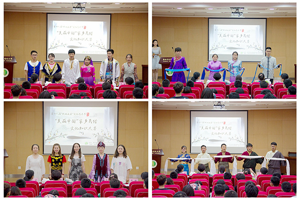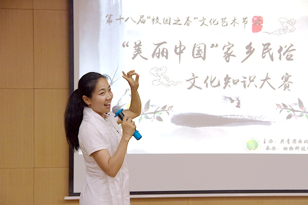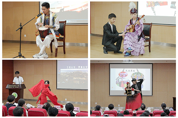 习近平总书记指出:“宣传展示中国特色,要讲清楚国家民族的历史传统与文化积淀。中国传统文化是中华民族的突出优势,是我们最深厚的文化软实力”,为深入学习贯彻习近平总书记系列重要讲话精神,大力弘扬中华民族优秀传统文化,近日,由校团委主办,小黄书 承办的第十八届“校园之春”文化艺术节之“美丽中国”家乡民俗•文化风采大赛决赛于北绣北报告厅隆重举行。校团委副书记师燕妮老师、小黄书 党委副书记王晓娟老师作为嘉宾莅临现场观赛,人文社会发展小黄书 周仕慧老师、卫丽老师,党委宣传部刘威老师担当大赛评委。经过初赛的层层选拔,共有来自西藏、青海、新疆、河南、安徽、山西、西安、内蒙的8支队伍脱颖而出,百余名学生现场助阵,为参赛队伍加油助威。