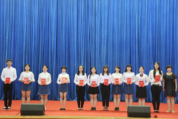 王晓娟副书记为优秀毕业生干部代表颁奖