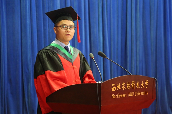 毕业研究生代表王洪程博士发言