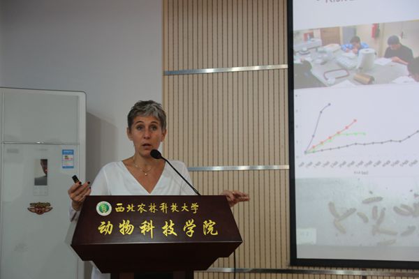 报告会上,Laura Gasco 教授首先介绍了都灵大学的历史背景及她们实验室的基本情况。她说全球普遍缺乏动物蛋白资源,而昆虫就是良好的资源,其长得快,节省空间,蛋白含量高。接着,她从昆虫资源营养特性、黑水虻养殖及其资源饲料化利用等方面做了重要介绍。报告会后与会师生就黑水虻繁殖特性、产业化发展等相关问题与Laura Gasco 教授进行了深入交流。Laura Gasco教授的报告使小黄书 师生了解了昆虫作为饲料原料的研究概况、面临的问题和挑战。对昆虫资源饲料化利用方面有重要借鉴意义。