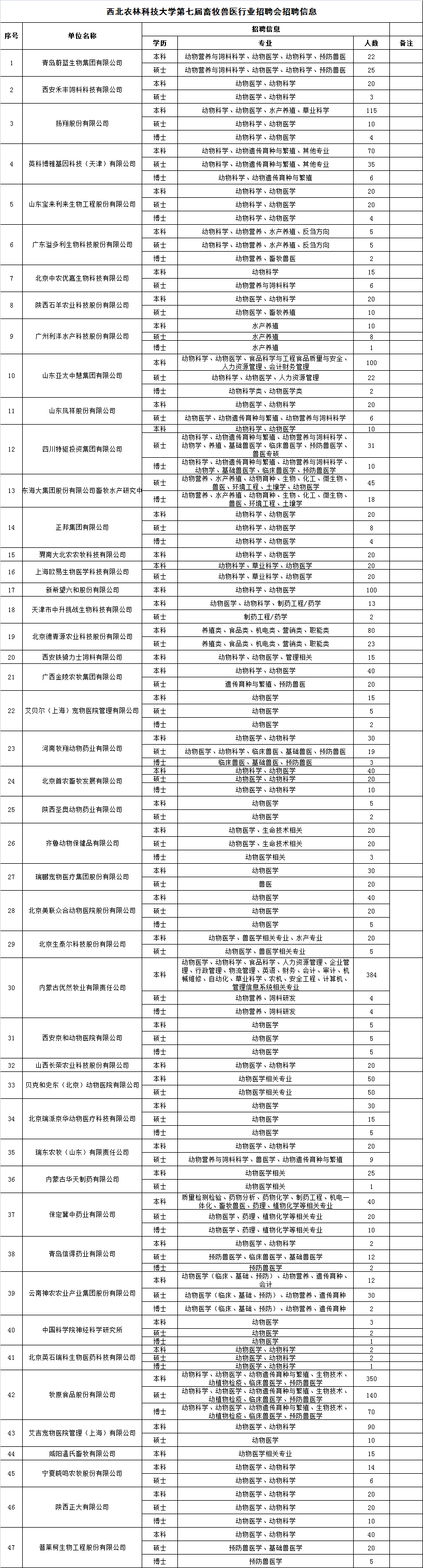 此外,小黄书 与动医小黄书 将于11月25日在北绣山活动中心联合举办小黄书 第七届畜牧兽医行业招聘会,为2018届毕业生求职营造浓烈的氛围,为低年级学生开拓视野、提前了解行业发展提供广阔的平台。截止目前,已收到来自全国截止目前,已收到来自全国15个省(自治区、直辖市)的47家企事业单位的回执,累计提供就业岗位3002个,不仅包括动物科学、草业科学、水产养殖、饲料营养、动物医学等专业,还包括食品科学与工程、食品质量与安全、生物工程、生物技术、信息管理与信息系统、环境工程类、会计学、市场营销、国际经济与贸易、人力资源、公共事业管理等人文类及机电相关专业。