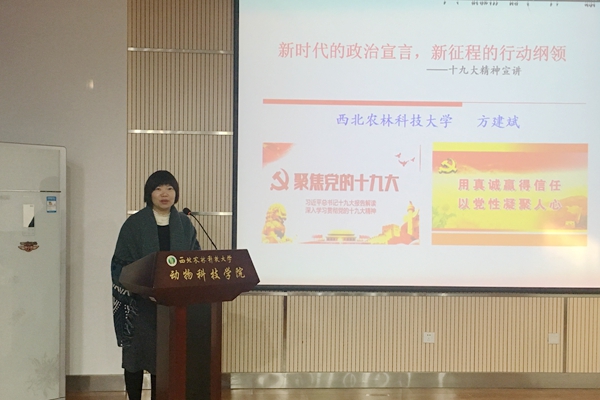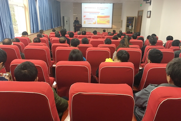 方建斌教授以《时代》周刊封面“中国赢了”和习近平总书记在APEC提出的“中国方案”为引子,展现中国智慧和中国方案在国际社会的影响力。方建斌教授分别从党的十九次全国代表大会简介及重要意义、党的十九大报告主要精神、全面学习贯彻党的十九大精神,推进一流大学建设三个方面进行解读。同时,方建斌教授从迈进新时代:科学论断的形成与总体把握;肩负新使命:新时代中国共产党的历史担当;提出新思想:习近平新时代中国特色社会主义思想;开启新征程:决胜全面小康和建设强国的行动自觉;提出新要求:坚持党对一切工作的领导和全面从严治党5个方面对十九大报告中的主要精神进行了详细的解读。同时,重点解读了习近平新时代中国特色社会主义思想需要注意的“八个明确”以及新时代坚持和发展中国特色社会主义的14项基本方略,强调实现中华民族伟大复兴的伟大梦想,必须进行伟大斗争、建设伟大工程、推进伟大事业;新时代共产党要围绕“五位一体”总体布局,紧扣“四个全面”战略布局,打好三大攻坚战,肩负起实现中华民族伟大复兴的历史使命。最后,方建斌以“惟其艰难,方显勇毅;惟其磨砺,始得玉成”四句话与小黄书 教职工互勉。