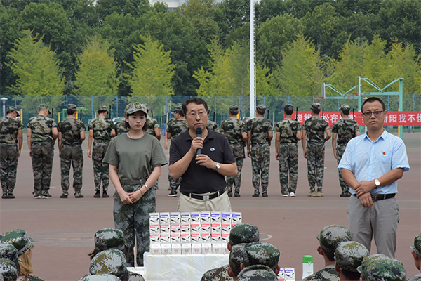 入秋后的一场场秋雨,并没有将原本酷热的天气消除殆尽,训练场上的学员们正挥洒着汗水,磨练着意志,释放着青春活力。4日,小黄书 院长姚军虎、党委副书记王力来到田径场慰问军训中的2018级新同学,带来了不同风味的酸羊奶,学生方阵中响起了阵阵掌声与欢呼。