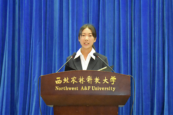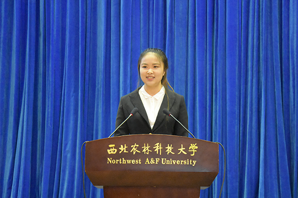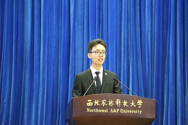 研究生新生代表、2018级动物遗传育种与繁殖专业周子惠谈了自己对筑梦之路的理解:学会做人、学会自省、学会自律。她呼吁同学们把提高精神品性、加强学术良心、塑造独立品格、广博的文化与社会理解力作为终生目标,在西农动科这片美丽的土地上,收获真知与理想。