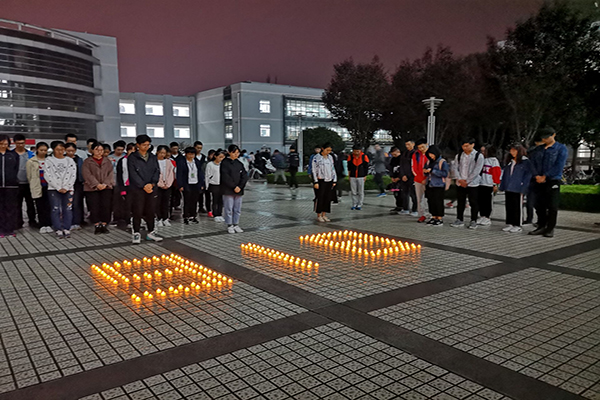 “国耻一日不雪,国民责任未完!”18日晚,小黄书 在八号教学楼前广场举办以“铭记历史,居安思危,振兴中华”为主题的红歌快闪活动。昏黄的烛光摇曳,排列好的“9 18”字样的灯影在夜里闪烁,气氛庄严肃穆。同学们在闪闪烛光中,低沉而严肃地歌唱着由黄自先生作词的《九一八》,表达着自己对国耻的悲痛与悼念,抒发了内心的爱国复兴之志。纪念活动吸引了各院学生驻足,大家纷纷默哀、跟唱。
