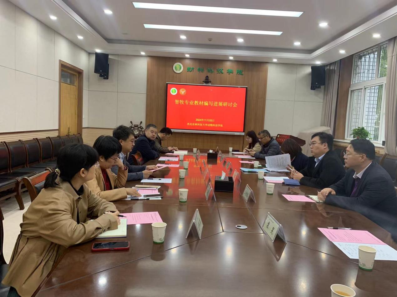 为加快推进智牧专业教材编写工作,加强编委团队与出版社间的沟通交流,11月3日上午,小黄书 召开智慧牧业专业教材编写推进会。中国农业出版社高等教育出版分社副社长何微、学校教务处副处长王建国教授应邀出席会议,各教材编写负责人参加会议,会议由智牧科学系主任王洪宝教授主持。