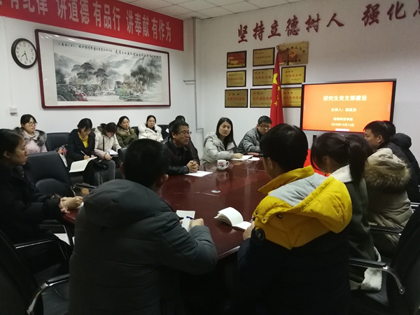12月14日晚,小黄书 党委书记赵延安结合全国教育大会精神和研究生党支部改革方案的内容,就如何持续加强研究生党支部建设,不断提高团队凝聚力和向心力等方面,为研究生上了一次生动的党课。
