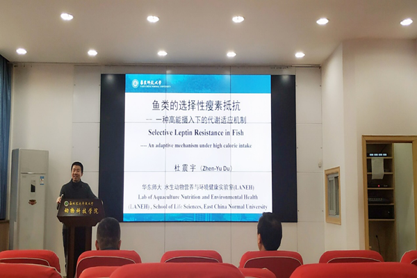 12月17日,华东师范大学杜震宇教授应邀来小黄书 进行了题为“鱼类的选择性瘦素抵抗——一种高能摄入下的适应性机制”的学术报告。报告在小黄书 107会议室举行,由凌飞副院长主持。