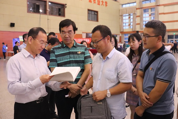 校党委副书记闫祖书翻阅小黄书 迎新材料