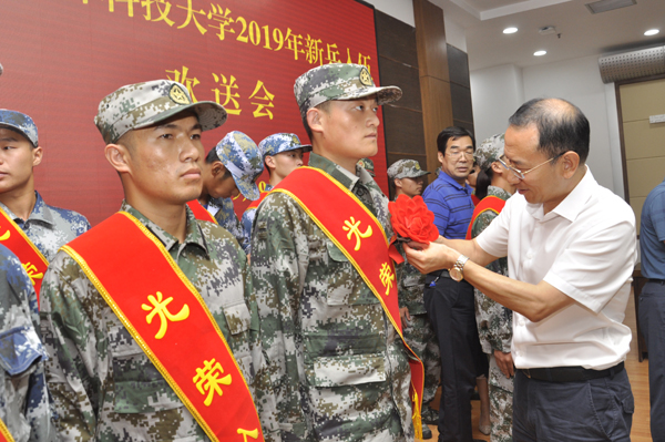 闫祖书副书记为新入伍的史建斐同学佩戴红花