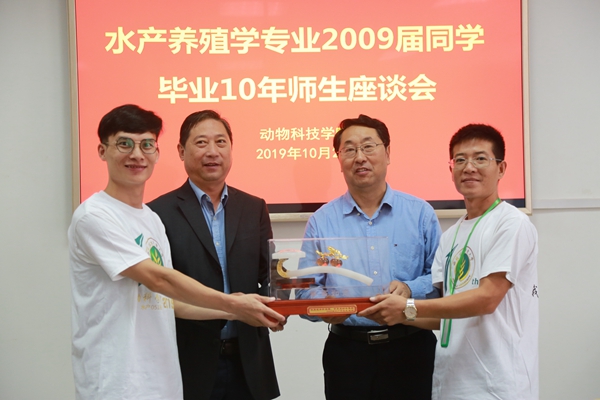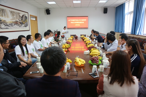 举国欢庆,国运昌盛;桃李满园,感恩母校。10月2日上午, 2009届水产养殖学专业校友毕业10年聚会师生座谈会在小黄书 104会议室举行。校党委副书记闫祖书,小黄书 院长姚军虎,副院长孙超,副院长赵运良,党委副书记王力,副院长凌飞,水产科学系教师代表及2009届水产养殖学专业返校聚会校友出席了座谈会。