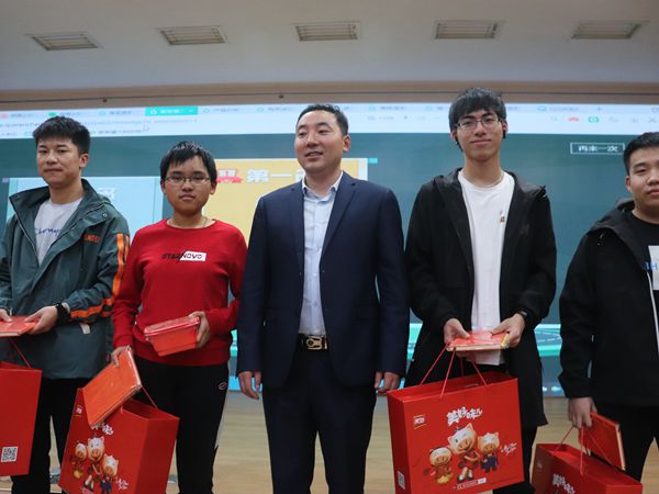 新希望六和股份有限公司养猪事业部总裁周端阳给学生发礼品