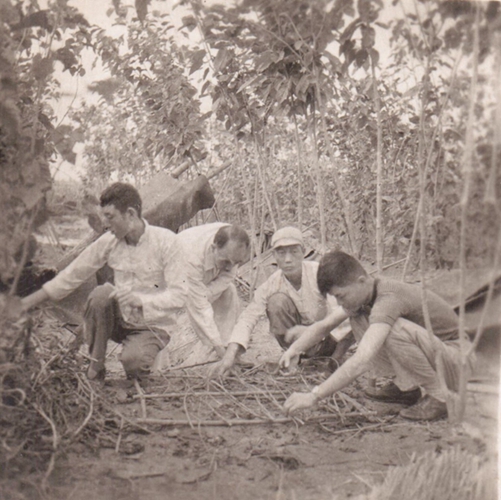20世纪50年代,首任所长姚鋈(左二)和科研人员制作桑枝簇