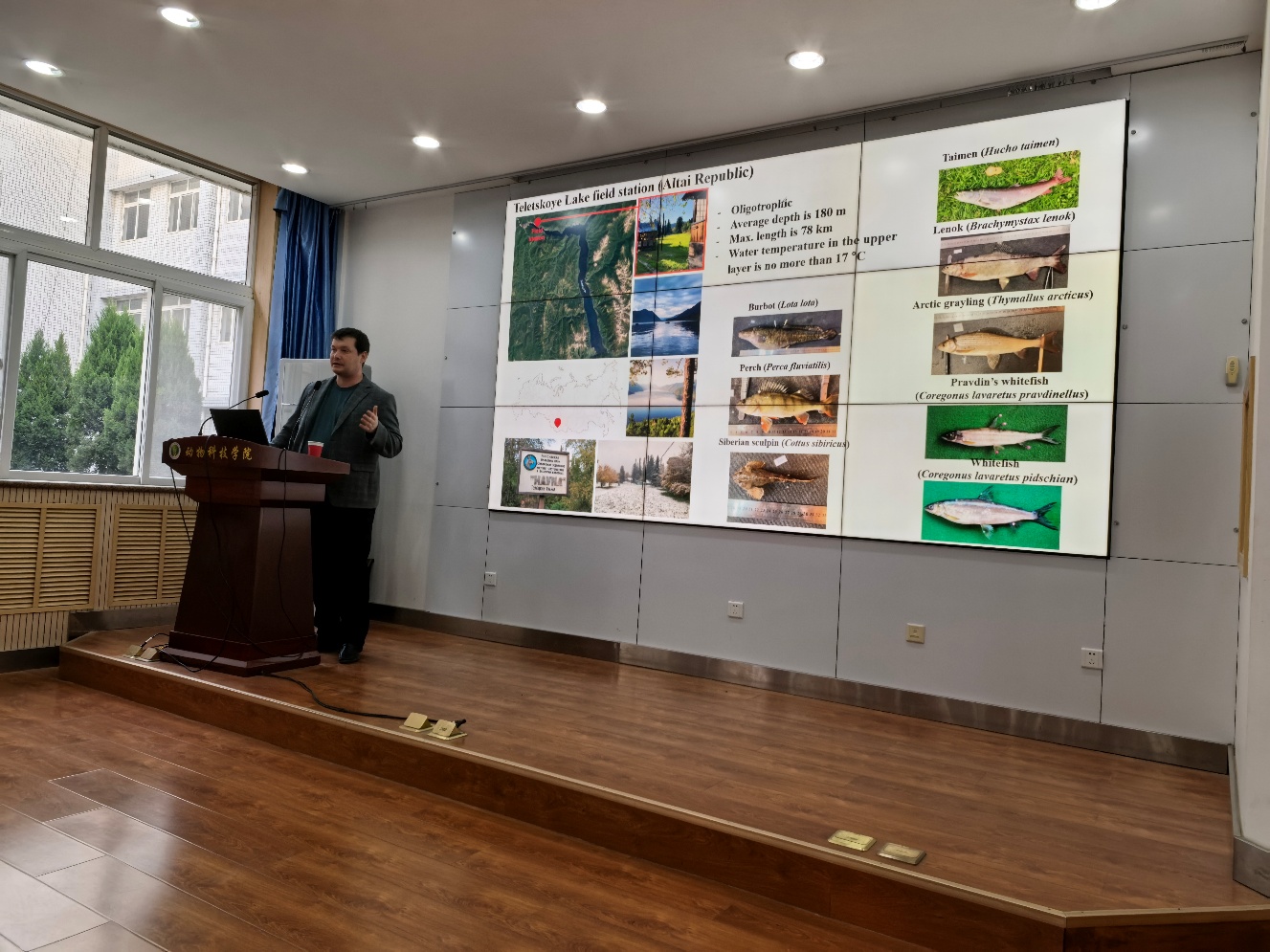Mikhail Solovyev研究员以《Inside fish gut: the key research areas and aims of our work》为题,为小黄书 师生带来了一场精彩的学术盛宴。报告中,他聚焦俄罗斯特有的冷水性鲑鳟鱼类,系统分享了其团队在该类群鱼类消化道酶活性、消化道寄生虫及肠道微生物组成等领域的最新研究成果。详实的数据、新颖的视角让在场师生深受启发,有效搭建了“不出校门即可参与国际学术对话”的优质平台。