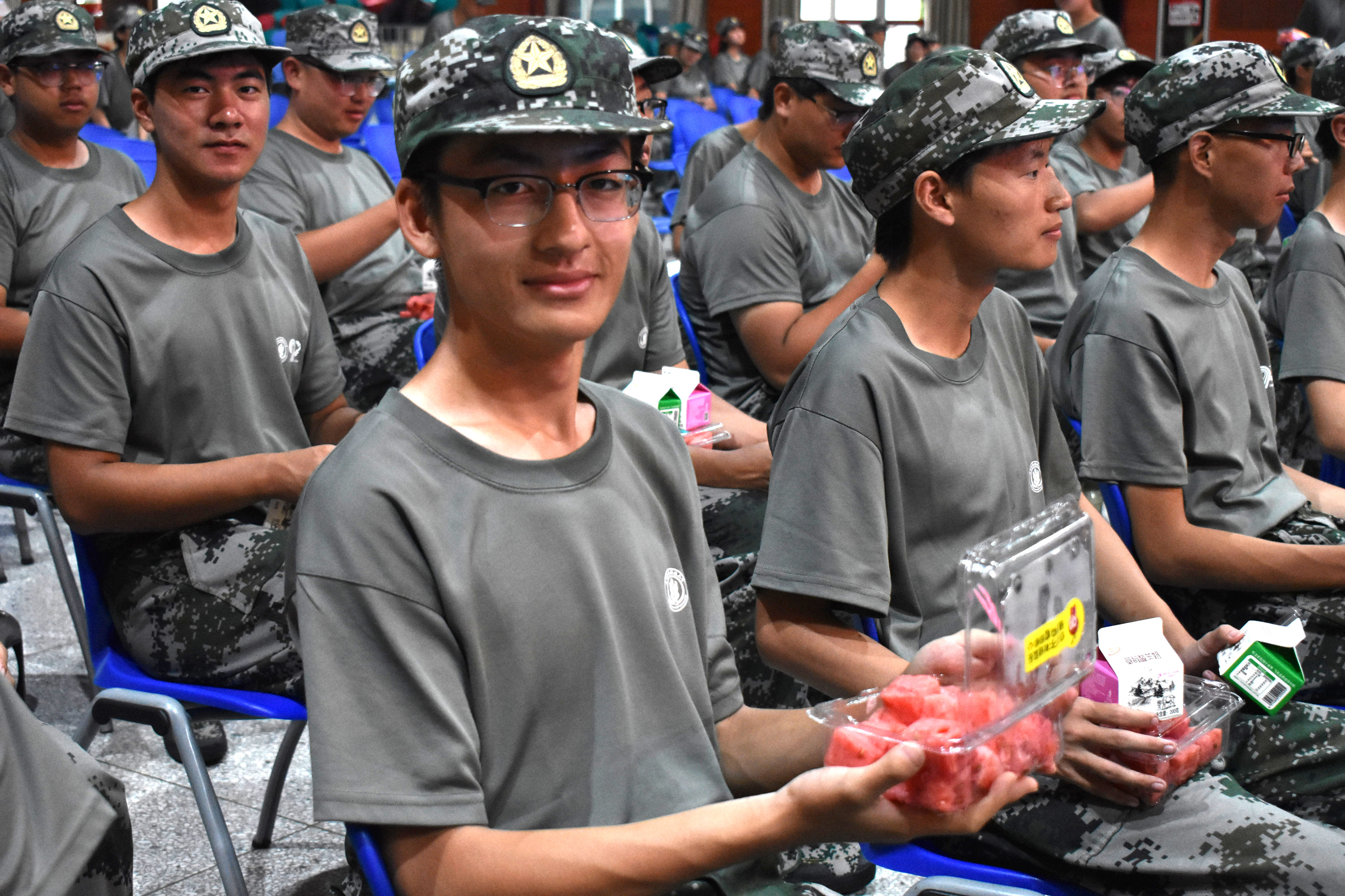 歌声嘹亮、动作整齐、气势恢宏,军训场上小黄书 2024级本科生正在展开合唱比赛和军事技能比武的排练。为了抓好入学第一课,同时给动科学子加油打气,让同学们品味畜牧科技产品,体验动科行业魅力,9月2日下午,小黄书 党委书记曹军会,宋宇轩研究员,任战军教授,党委副书记王力带着益生菌酸羊奶、麻辣兔丁和冰镇西瓜来到北绣山活动中心慰问全体承训教官和参训学生。
