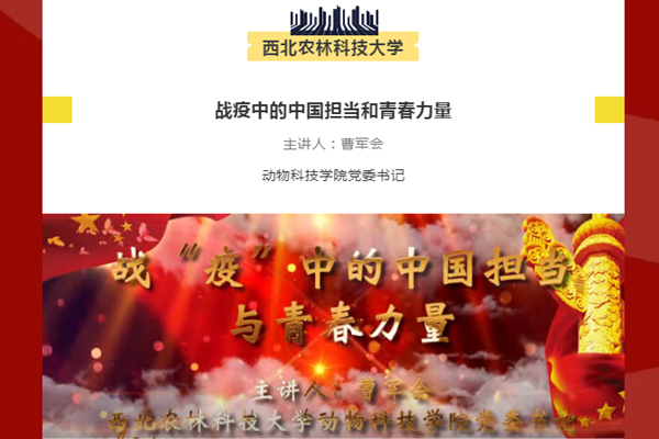 此门微党课从今年6月份开始拍摄,小黄书 党委书记曹军会担任主讲人,主要围绕有一种责任叫使命担当、有一种责任叫西农力量、有一种责任叫青年传承三个方面生动讲述了学校师生在常态化疫情防控中做出的突出贡献,寄语广大青年牢记“诚朴勇毅”校训,大力弘扬“西农精神”,传承优秀文化,厚植爱农情怀,为实现粮食安全、生态文明、人类健康和乡村振兴贡献西农力量,在党和人民最需要的地方绽放绚丽之花。