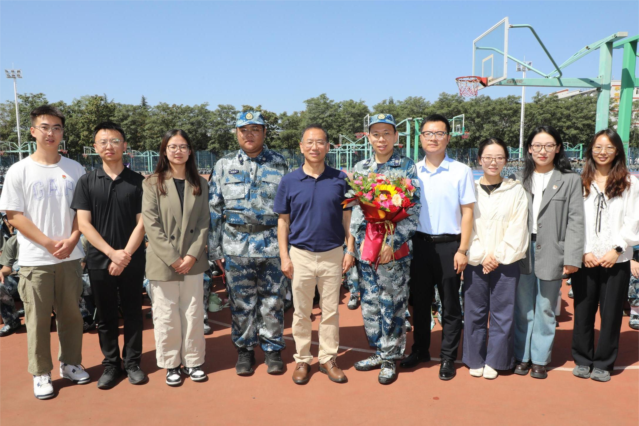 闫祖书实地检查了训练进展,向承训教官和参训学生表达了亲切问候,并关切地询问训练进度和学生身体状况,叮嘱组训人员科学施训、注意安全。他还向师生介绍了陪同慰问的各部(处)相关负责同志,明确表示学校各部门都是同学们的坚强后盾,将全力为军训工作和学生成长提供保障。