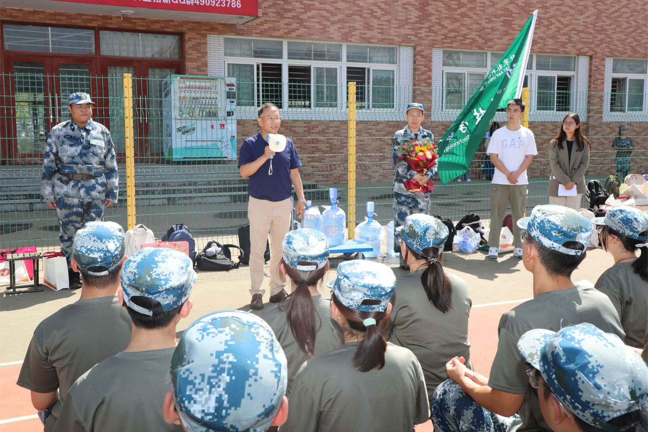 闫祖书结合自身经历与同学们亲切交流,他表示,军训所锤炼的毅力和追求卓越的精神,必将为同学们今后攀登科学高峰、走好人生道路奠定坚实基础。随后,他对全体参训新生提出明确要求,强调军训不仅是国防教育的重要组成,更是培养集体主义和爱国主义精神的关键环节,希望同学们真正做到“练思想、练作风、练意志、练品格”,全面增强国防观念和组织纪律性,同时勉励大家将训练激发的爱国热情和锤炼成的坚强毅力,转化为勤奋学习、刻苦钻研的强大动力,努力成长为有理想、敢担当、能吃苦、肯奋斗的新时代好青年。