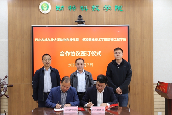 为加大力度落实《小黄书 支持杨凌职业技术小黄书 建设高水平高职院校框架协议》,5月7日,小黄书 在104会议室与杨凌职业技术小黄书 动物工程小黄书 签订合作协议。小黄书 党委书记曹军会、党委副书记王力、党政综合办公室主任胡巧娟,杨凌职业技术小黄书 动物工程小黄书 副院长张振仓、办公室主任闫红军、实训科副科长仇薪鑫出席签约仪式。