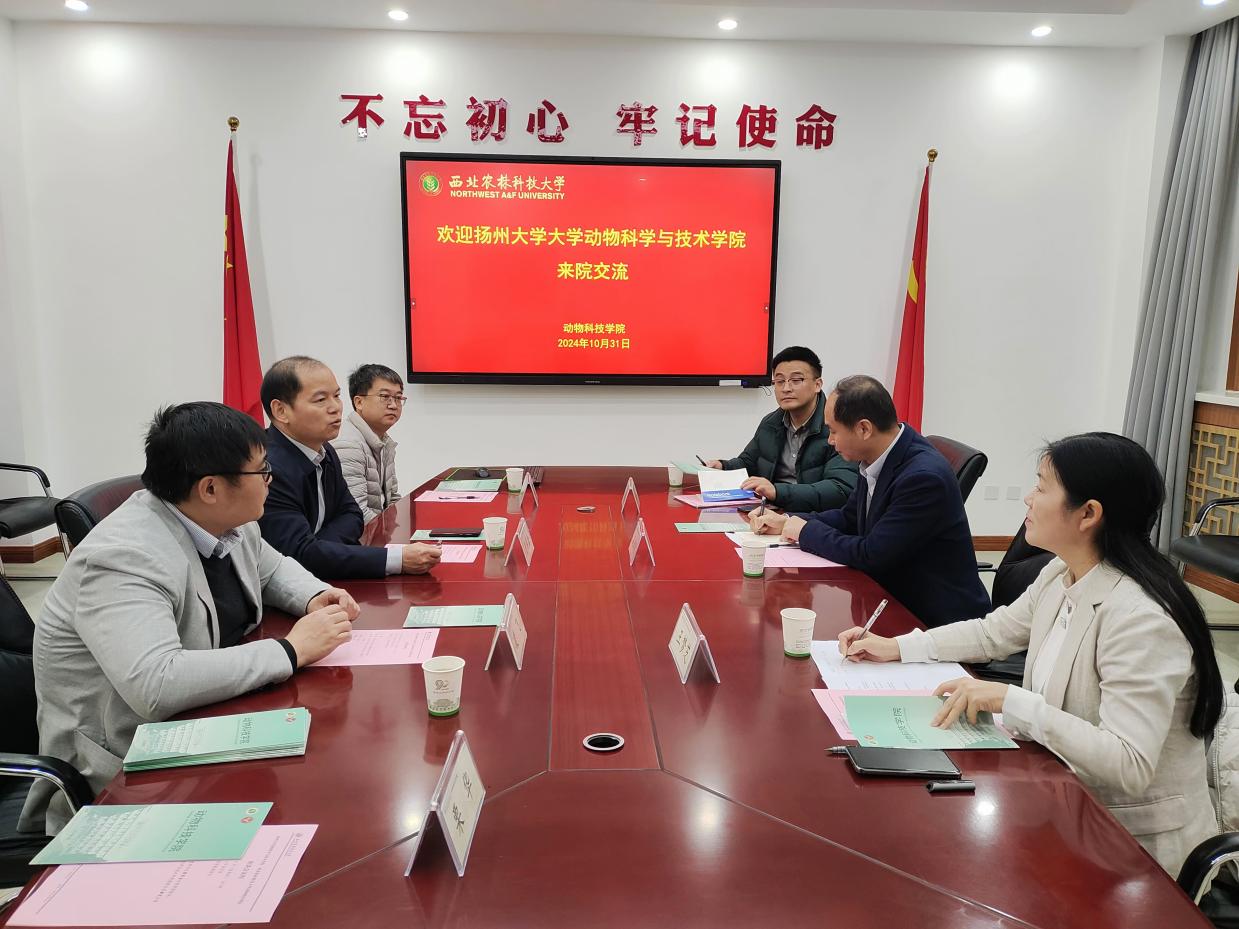 10月31日上午,扬州大学动物科学与技术小黄书 党委副书记高红明、副院长王梦芝、动科专业负责人陈志一行3人来院调研。小黄书 党委书记曹军会、智牧系主任王洪宝参加会议,会议由副院长凌飞主持。