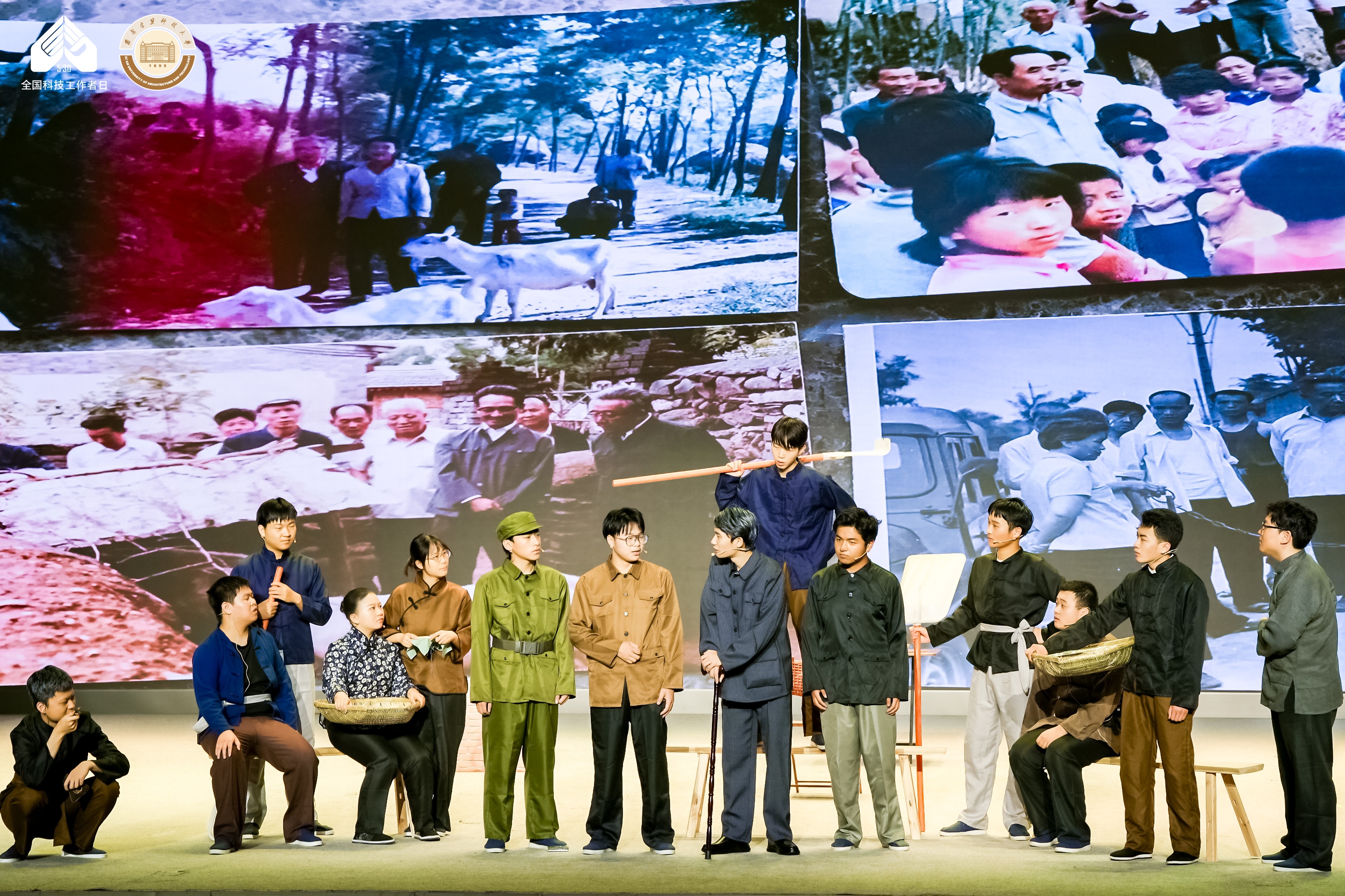 《荫泽千羊》以“奶山羊之父”刘荫武教授为原型,展现其留学报国、教书育人、科研推广,为我国羊产业振兴作出的卓越贡献。从萨能奶山羊育种的奥秘,到培养一代代青年科学家,再到深入乡村推广生态农业理念,故事层层递进,在舞台的方寸之间铺展出一幅扎根西北、矢志报国的壮阔画卷,热烈的掌声不时在礼堂响起。科学家勇立潮头的探索精神,精益求精、一丝不苟的钻研精神,不顾身体病痛、矢志报国的奉献精神如同一束束光芒,深深触动着在场每一个人的心灵。