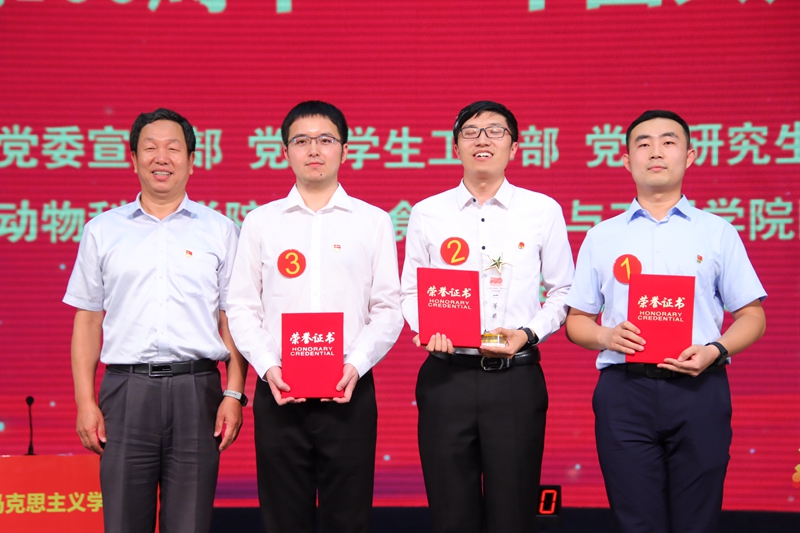 校团委书记李国龙、小黄书 党委书记曹军会为三等奖队伍颁奖