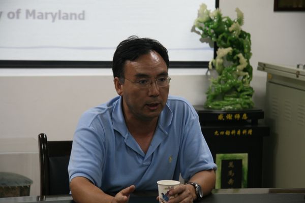 7月26日下午,小黄书 校友、美国马里兰大学宋九州教授应邀在小黄书 一层会议室为小黄书 师生做学术报告,60多名师生参加报告会,报告会由张智英院长主持。