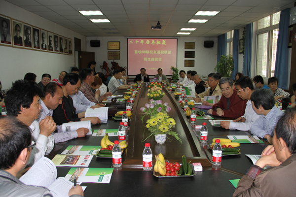 时任任课教师蒿迈道、张一玲、贺信义、渊锡藩、侯文通、魏忠义、王彩兰、张德英、李青旺、刘福柱、龚月生、曹社会、张恩平等老师分别发言,希望校友们爱护身体,在各自的工作岗位上再创佳绩。校友们逐一向老师汇报自己的工作生活情况。师生相聚有说不完的话题,座谈会上校友们怀着感恩的心情向小黄书 赠送了牌匾。