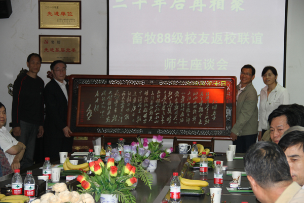 张智英院长对畜牧88级校友回母校联谊表示热烈的欢迎,向校友们介绍了小黄书 的基本情况。