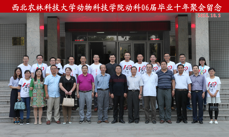 10月2日下午,动物科学专业2006届校友在小黄书 104会议室举行了毕业10年聚会师生座谈会。校友会副秘书长张红亮,小黄书 党委书记赵延安、副院长昝林森、孙超、王力及原任课教师代表、辅导员、班主任分别参加了座谈会。