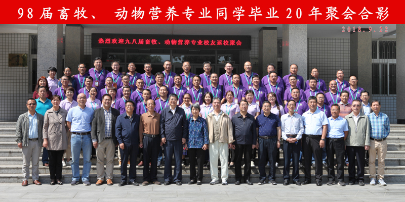 9月22日上午,98届畜牧、动物营养专业校友回校举行毕业20周年聚会。副校长罗军教授,小黄书 院长姚军虎、党委书记赵延安、副院长昝林森、孙超、赵运良、副书记王力及原任课教师代表、班主任参加了座谈会。